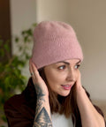 Czapka ze zdjęcia wykonana została z włóczki CASHMERINI w kolorze Pudrowy Róż (5440). Jest to rozmiar 2 odpowiadający obwodowi głowy 51-55 cm.